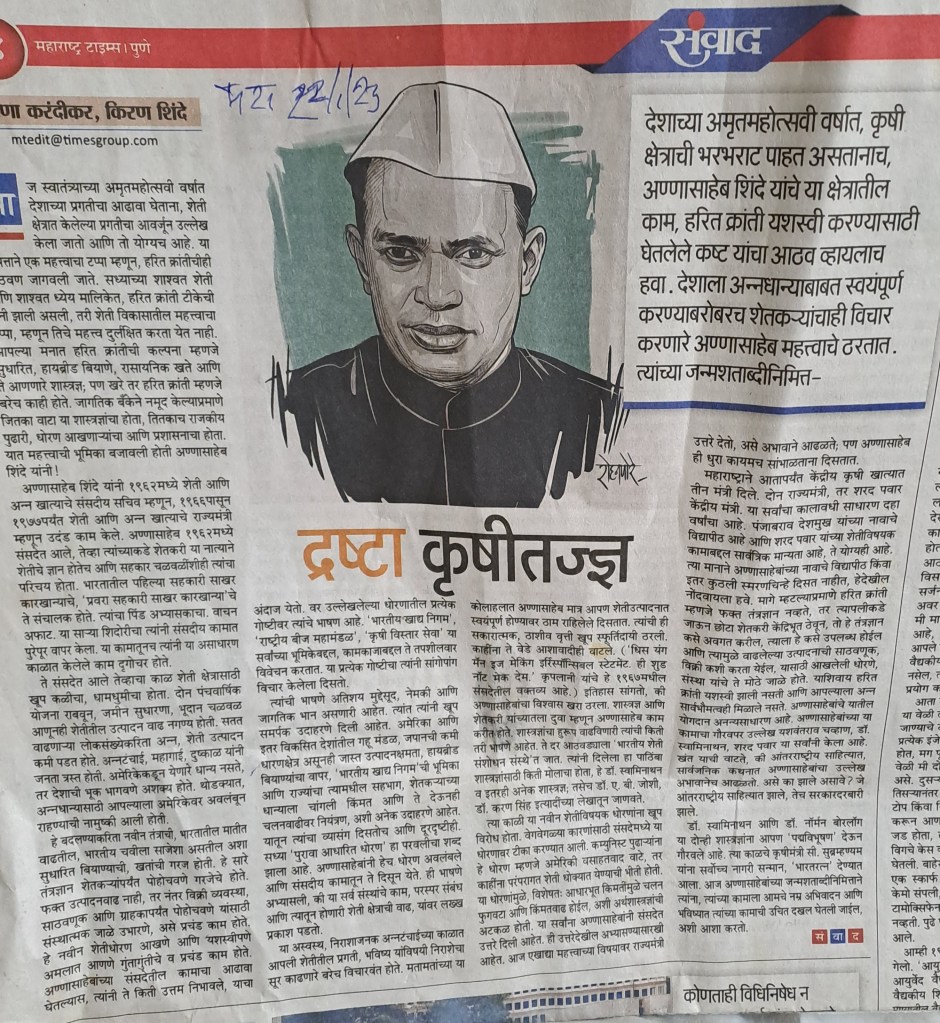 ЁЯЩПрдЕрдгреНрдгрд╛рд╕рд╛рд╣реЗрдм рд╢рд┐рдВрджреЗ– рдорд╛рдЬреА рд╢реЗрддреА рдЦрд╛рддреНрдпрд╛рдЪреЗ рд░рд╛рдЬреНрдпрдордВрддреНрд░рд┐ –рджреНрд░рд╖реНрдЯрд╛ рдХреГрд╖рд┐рддрдЬреНрдЬреНрдЮ — рд▓реЗрдЦрдХрд╛рдиреЗ рдХрд╛рд░рдХреАрд░реНрджреАрдЪреЗ рдореВрд▓реНрдп рдорд╛рдкрди рдХрд░реВрди рддреНрдпрд╛рдВрдЪреА рдпреЛрдЧреНрдп рддреА рджрдЦрд▓ рдШреНрдпрд╛рд╡реА рдЕрд╕реЗ рд╕реБрдЪрд╡рд▓реЗрд▓реЗ рдЖрд╣реЗ– рддреНрдпрд╛рдВрдЪреНрдпрд╛ рдХрд╛рдорд╛рдЪреА рдкрджреНрдзрдд– рд╕реНрдкреГрд╣рдгреАрдп рд╣реЛрддреА рдЕрд╕реЗ рдПрдХрдВрджрд░реАрдд рдордд рд╣реЛрддреЗрдп– рд╕реМрдЬрдиреНрдп рдорд╣рд╛рд░рд╛рд╖реНрдЯреНрд░ рдЯрд╛рдЗрдореНрд╕ 22.1.23