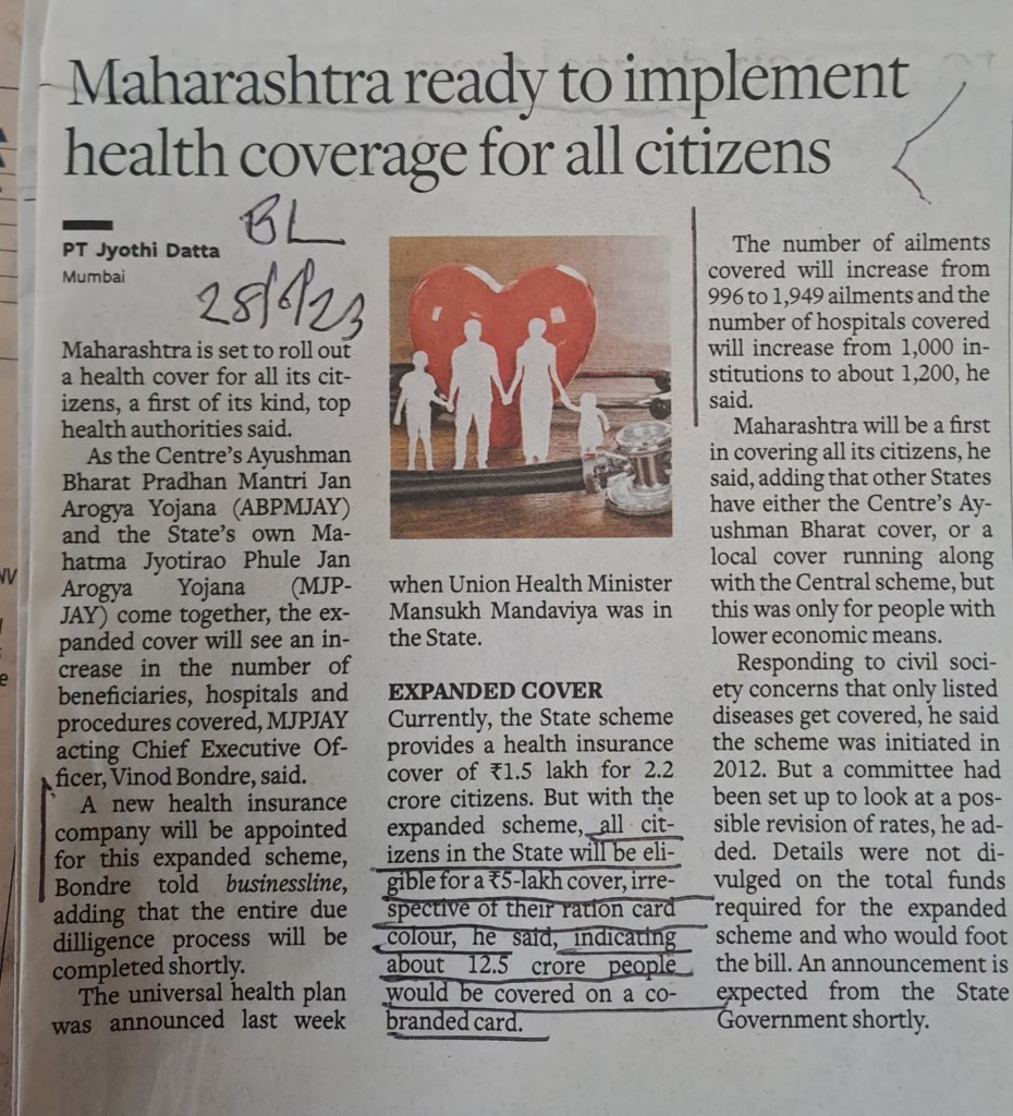ЁЯЩПHealth Insurance of 5 lacs – for all -proposed — in Maharashtra–