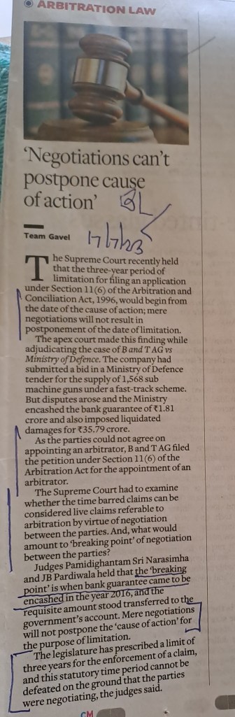 ЁЯЩПSupreme Court considers limitation issue–whether negotiations postpones it ? Courtesy BusinessLine 17.7.23