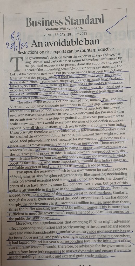 Ban on export of all types of rice– Business Standard editorial–some facts are worth taking notice of ! Courtesy Business Standard 28.7.23ЁЯЩПЁЯЩПЁЯЩПЁЯЩПЁЯЩПBan on export of all types of rice– Business Standard editorial–some facts are worth taking notice of ! Courtesy Business Standard 28.7.23