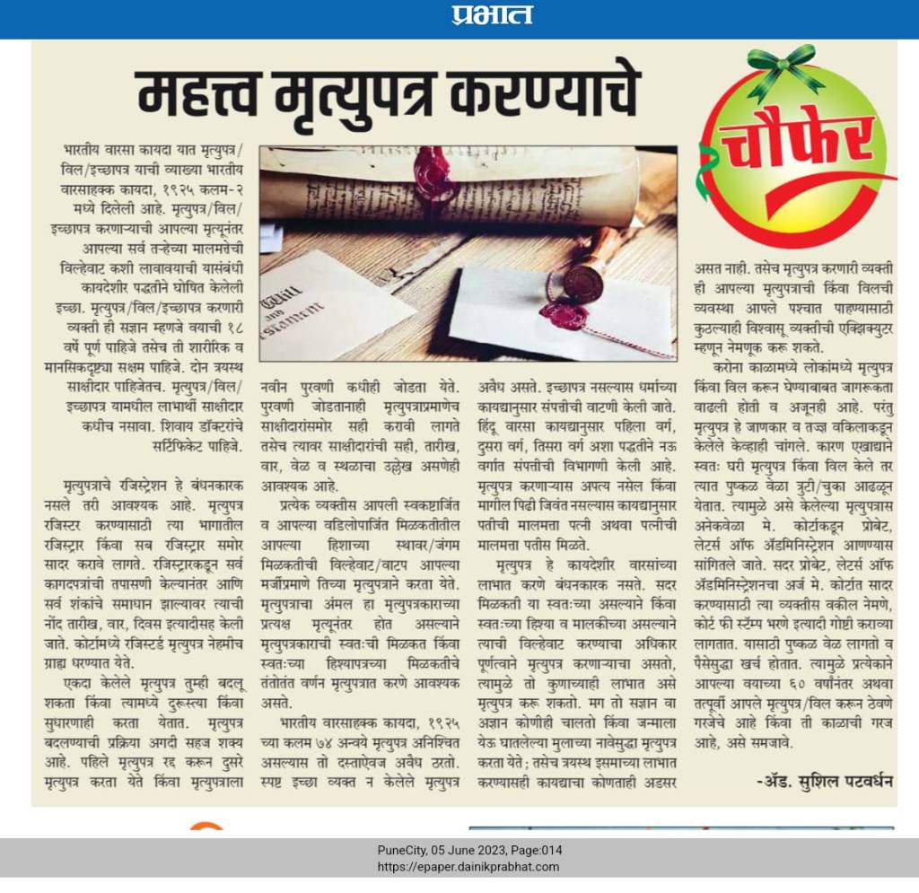 मृत्युपत्र किती महत्त्वाचे! सौजन्य प्रभात 29.7.23