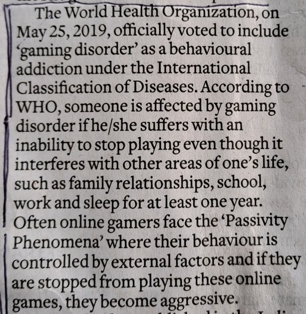 What is ” gaming disorder ” and how it is measured? Courtesy BusinessLine 8.8.23