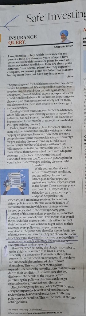 Insurance related querry–Courtesy BusinessLine 11.8.23