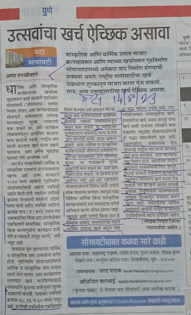 सोसायटी साठी उपयुक्त माहिती– सौजन्य महाराष्ट्र टाइम्स 15.8.23