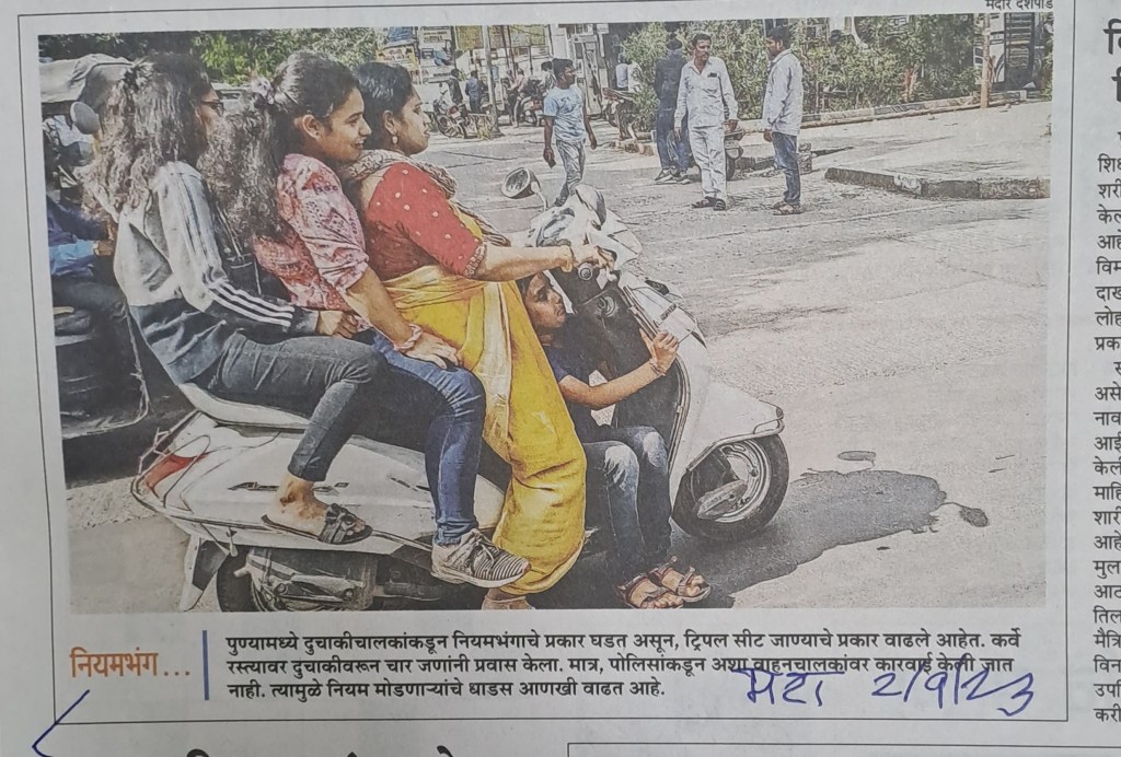 तीन जण जात असतात हे माहीत आहे पण 4th one? रिस्क आहे हे समजून आपण असू का वागत असतो ? [ चित्र महाराष्ट्र टाइम्स 2.9.23