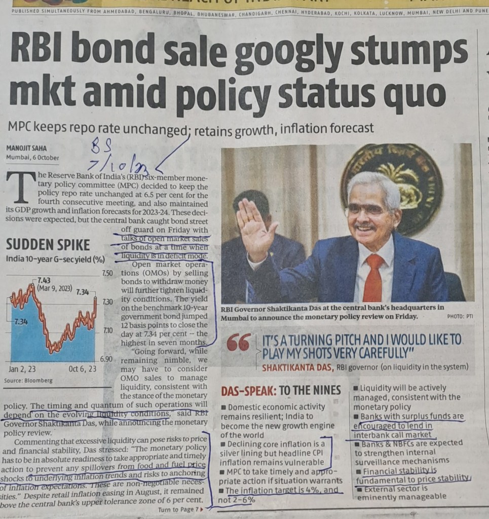 ЁЯЩПЁЯЩПЁЯЩПЁЯЩПЁЯЩПRBI prescription to ensure price stability–feels financial stability is important to ensure price stability– Business Standard 7.10.23