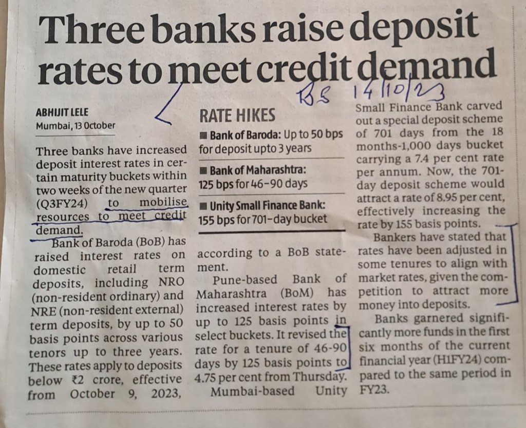 Is the increase only in short end tenures ? News –Courtesy Business Standard 13.10.23