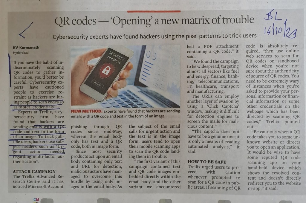 Let us not open mails with QR code and text in the form of an image –[2] read to know the new game –Courtesy BusinessLine 14.10.23