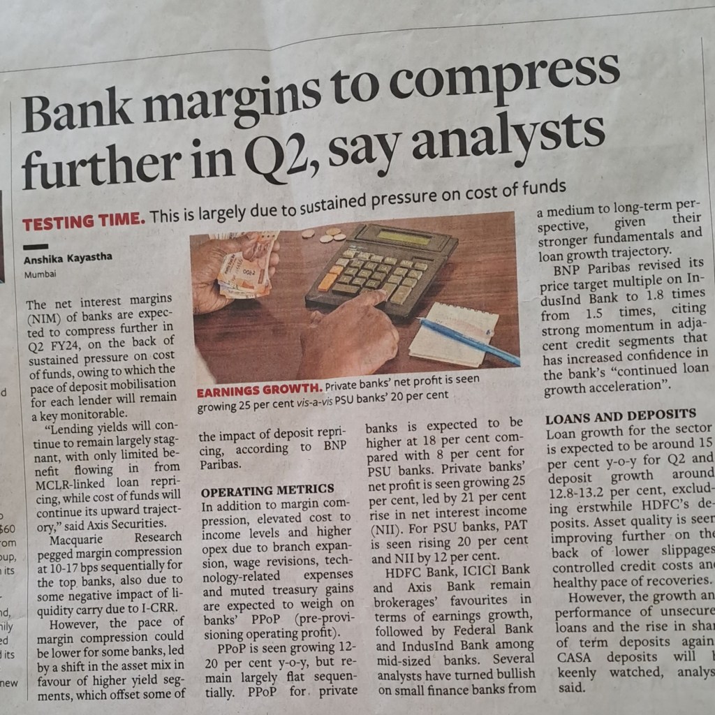 Central issue could be — [1] growth and performance of retail loans and the rise in share of term deposits against CASA deposits –Courtesy BusinessLine 11.10.23