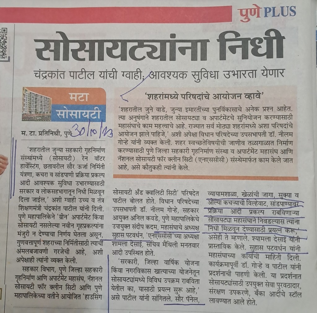 सोसायटी साठी उपयुक्त माहिती! सौजन्य महाराष्ट्र टाइम्स 30.10.23