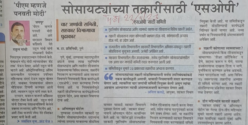 सोसायटी साठी उपयुक्त माहिती–सौजन्य महाराष्ट्र टाइम्स 22.11.23