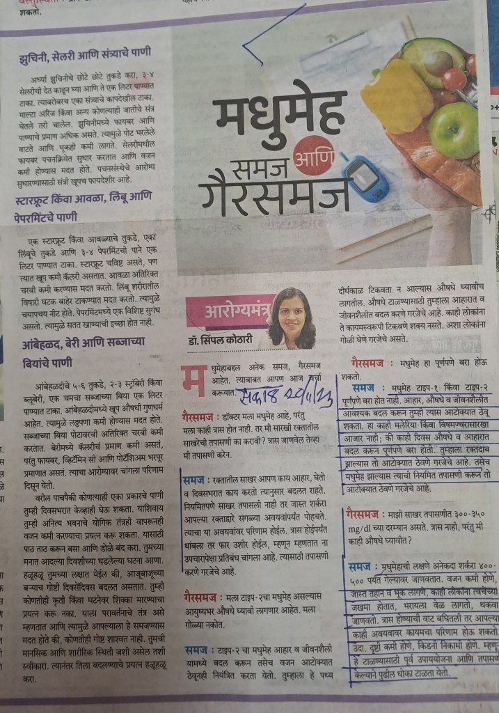 मधुमेह — समज–गैरसमज –उपयुक्त माहिती — सौजन्य सकाळ