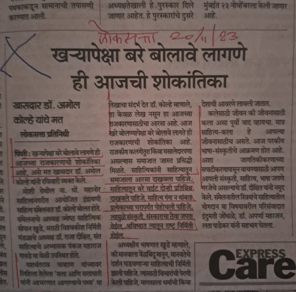 सामाजिक व्यथा चांगली व्यक्त केली आहे — सौजन्य लोकसत्ता २०.११.२०२३