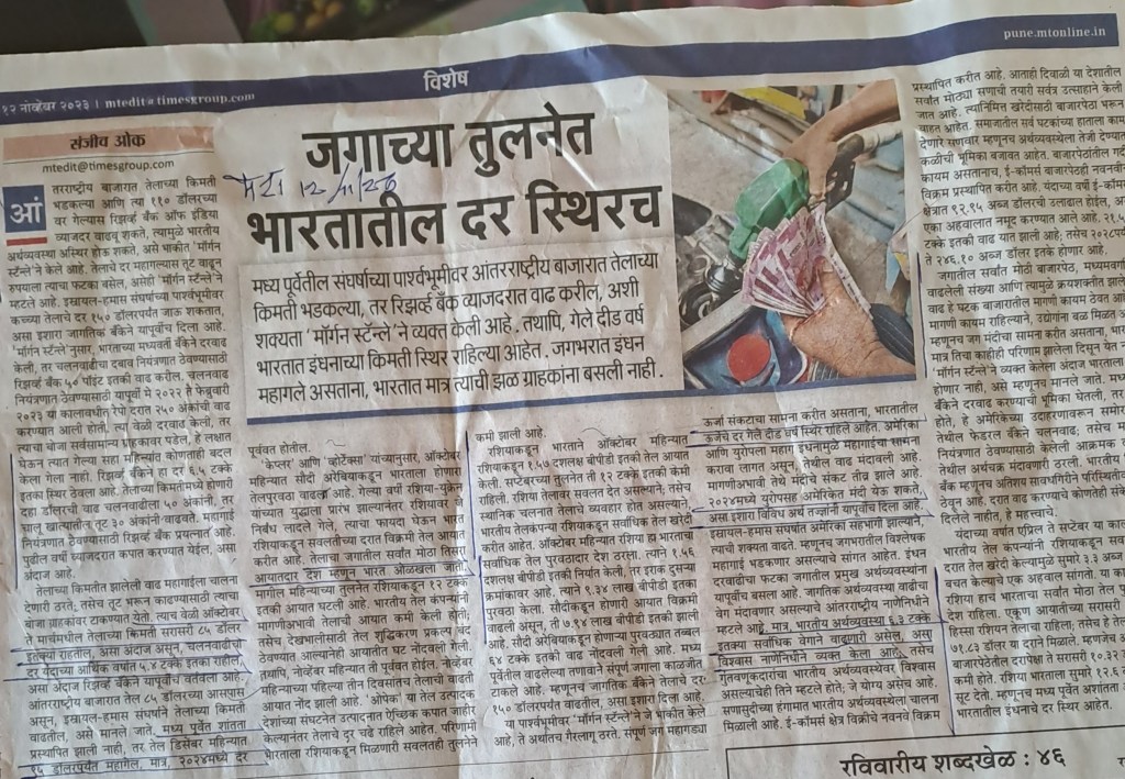 भारताची अर्थव्यवस्था तुलना करू पाहू तर स्थिरच नव्हे तर वाढती आहे — सौजन्य महाराष्ट्र टाइम्स १२.११.२०२३