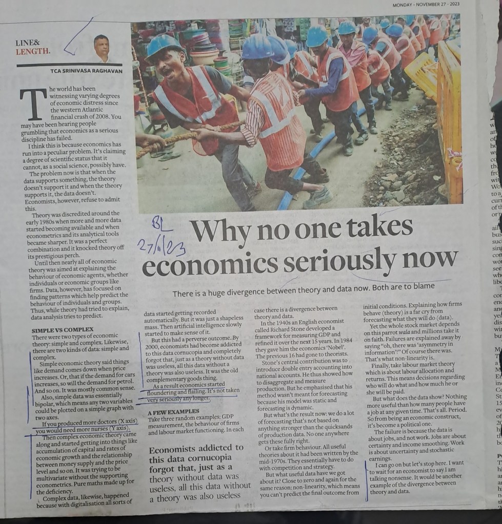 An article which throws light on the basic economic issues — Courtesy BusinessLine 27.11.2023