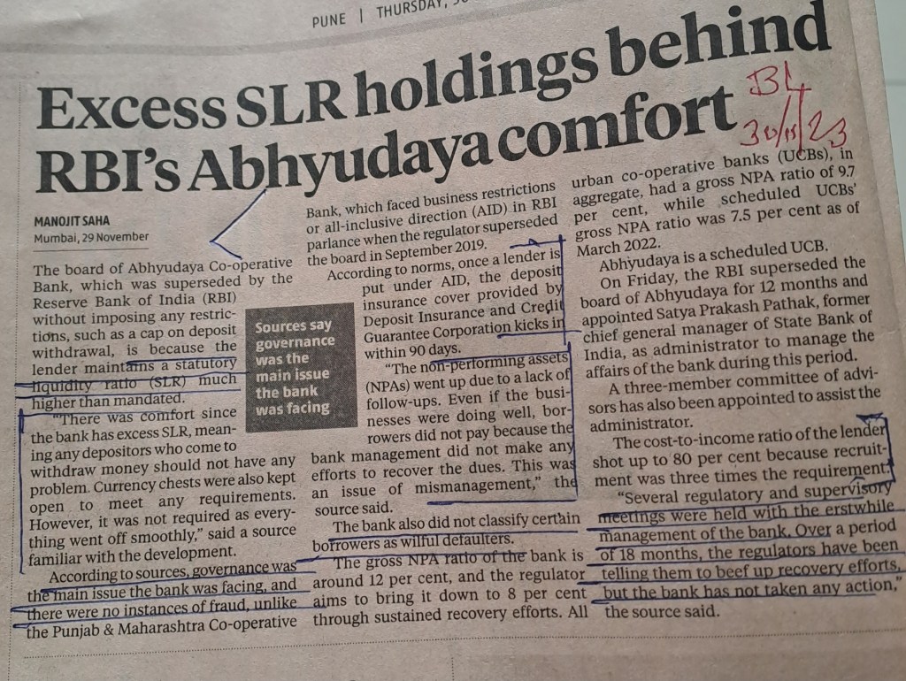 Currency chests were kept open but it was not needed [2] [according to this news item]there were no instances of fraud and with excess SLR –and this is what made RBI not to impose any curbs on deposit withdrawals–Courtesy Business Standard 30.11.23