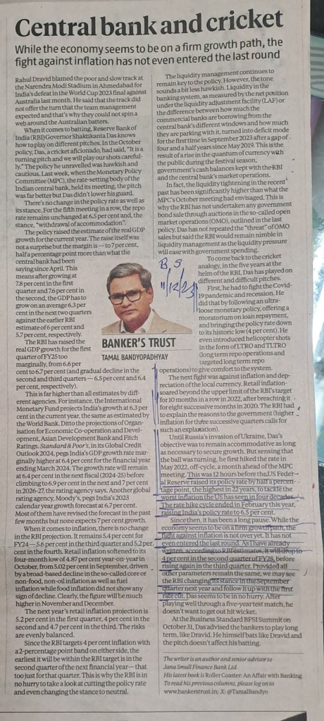A must read article on RBI’s steps vis a vis repo rate — inflation –growth rate etc —