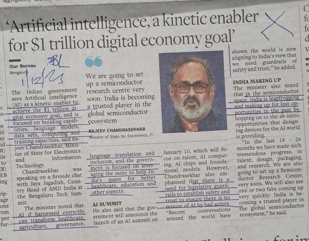 AI– a kinetic enabler– towards goal to reach $ 1 trillion digital economy goal–Courtesy BusinessLine 1.12.2023