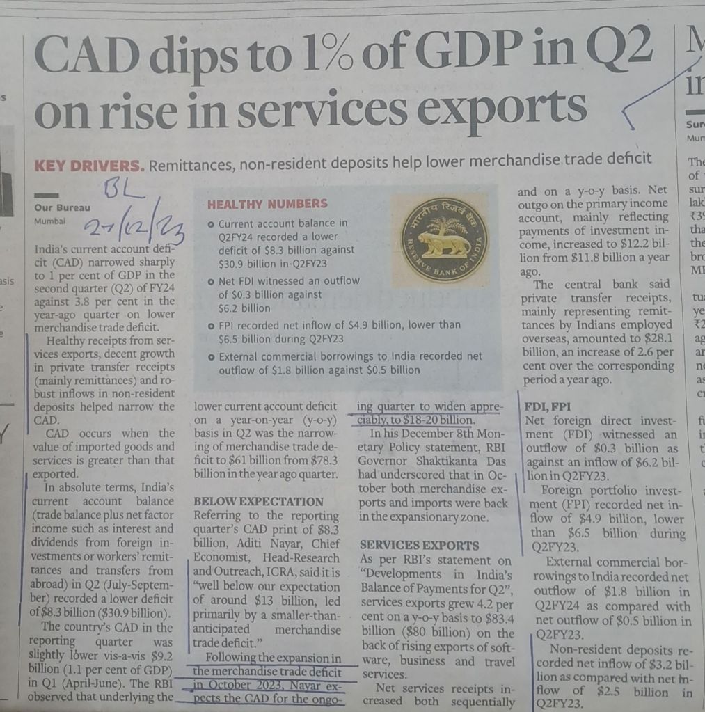 CAD–Q2 news encouraging but Q3 CAD expected to widen to $ 18/20 billion– Courtesy 27.2.2023