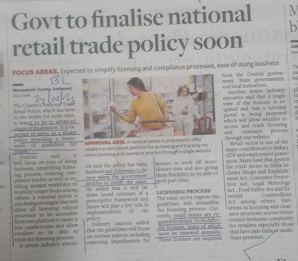 Expected National Retail Trade Policy–will be a game changer– courtesy BusinessLine 27.12.2023