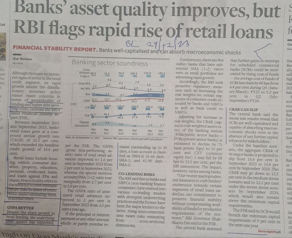 ЁЯСМRBI wary of risks building up because of rapid rise of retail loans– Courtesy BusinessLine