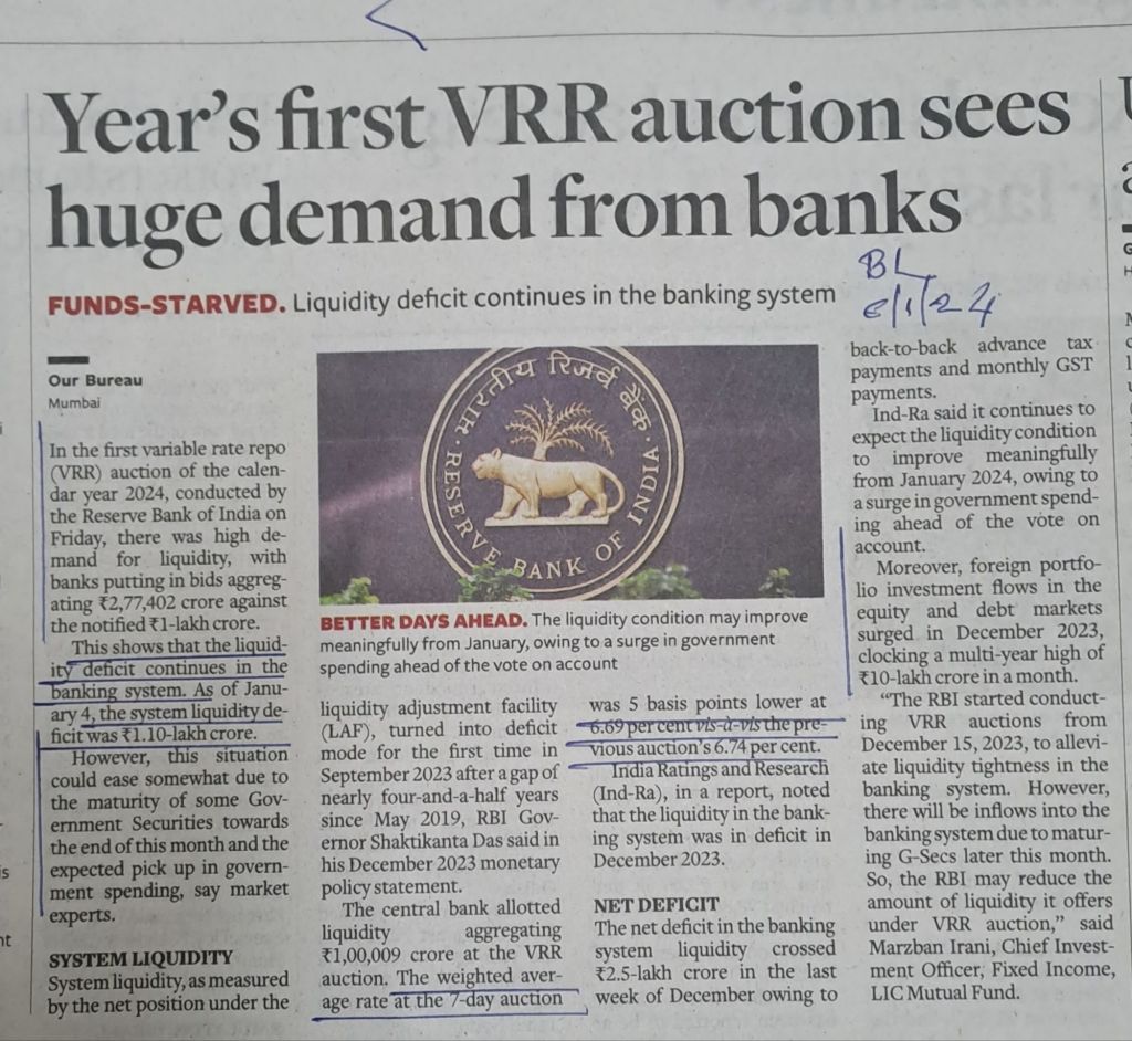 Liquidity constraints banks r facing [1] RBI notified amount 1.10 lac — VRR auctions–but bid amounts 2.77 lac crores [2] weighted average rate at the 7 day auctions was 6.69% [ 6.74% previousauction[3] constraints r expected to ease due maturing of government securities and expected pick up in government spending–