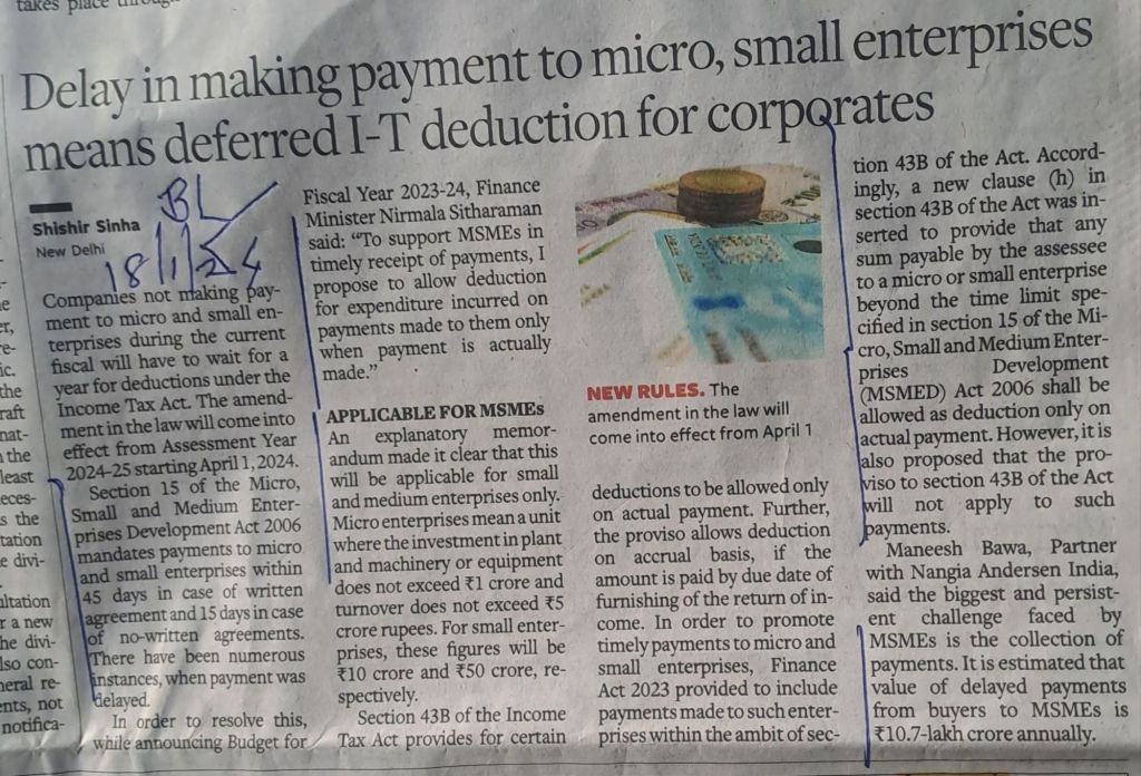 Budget provisions in case of delated payments to MSMEs –Courtesy BusinessLine