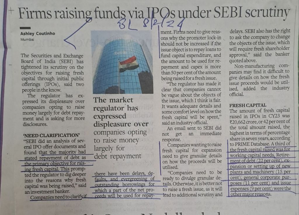 IPOs –Are they a route for evergreening [ read stuck bank loans ] [2] SEBI steps may limit the quantum–Courtesy BusinessLine