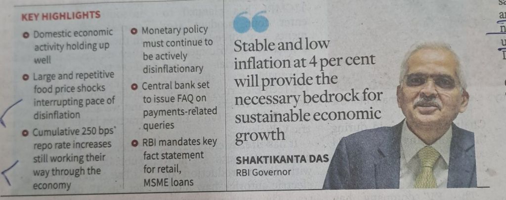 [1] sums up RBI thinking [2] In Indian conditions RBI surmises 4% inflation rate is stable and low [3] RBI concludes repo rate increases –of 250 basis points –still working through their way thru the economy [4] HDFC Bank Chief Economist Mr Barua says rate cuts r unlikely before August policy– Source BusinessLine