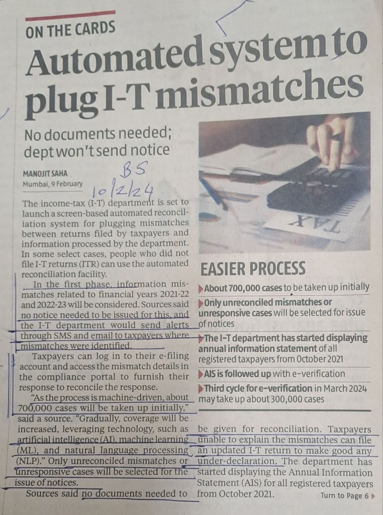 IT–Information mismatch –No notices will be issued initially but only SMS and email [2] taxpayers need to log in to e-filing account and access the mismatch details in the compliance portal–to do the needful–Courtesy Business Standard