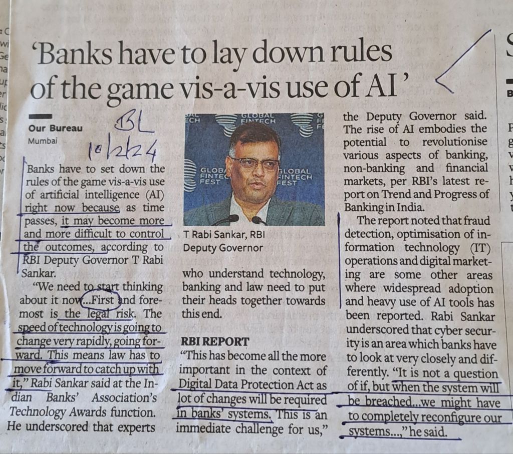 RBI DG sounds a warning bell vis a vis AI and invites attention to DPDP Act – Courtesy BusinessLine