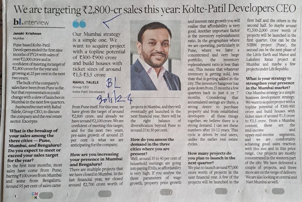Kolte Patil –Courtesy BusinessLine 30.1.24