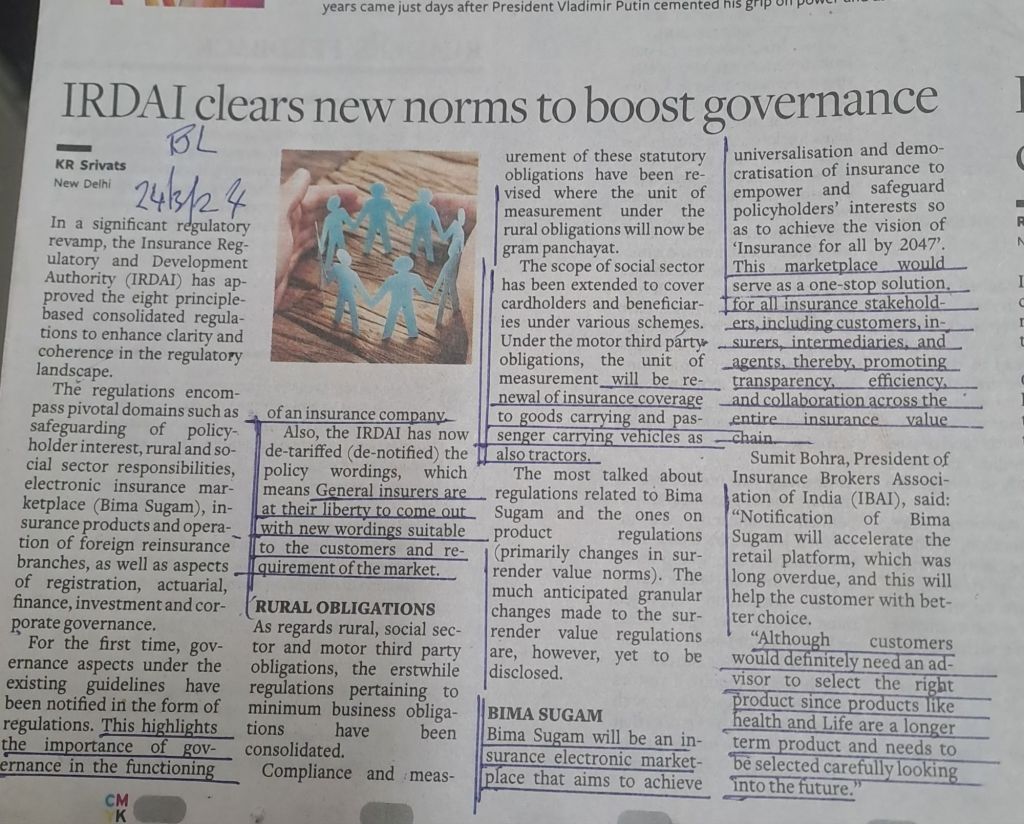 ЁЯЩПBima Sugam– a market place –much needed–Courtesy BusinessLine