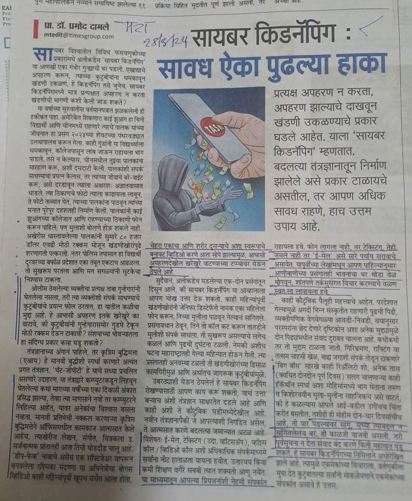 ЁЯЩПCyber kidnapping–what it is? How to avoid pitfalls? Courtesy Prof Doctor Damale [ Article in рдорд╣рд╛рд░рд╛рд╖реНрдЯреНрд░ рдЯрд╛рдЗрдореНрд╕]