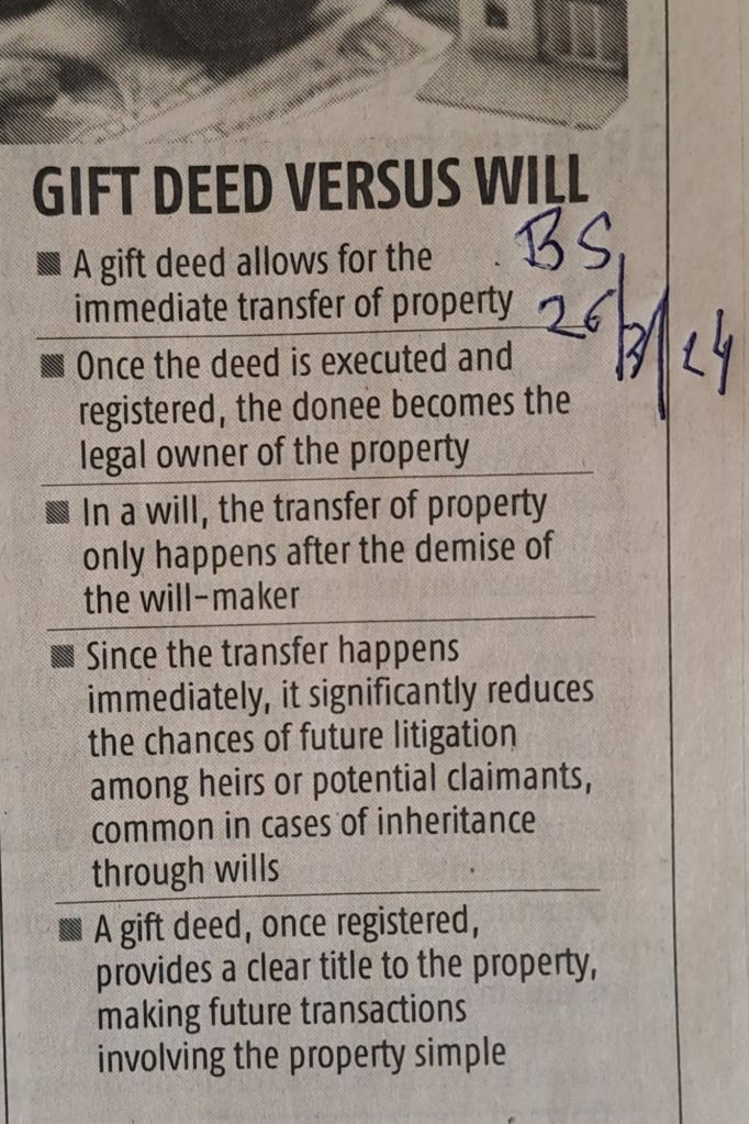 गिफ्ट डीड की मृत्युपत्र– सौजन्य Business Standard 26.3.24