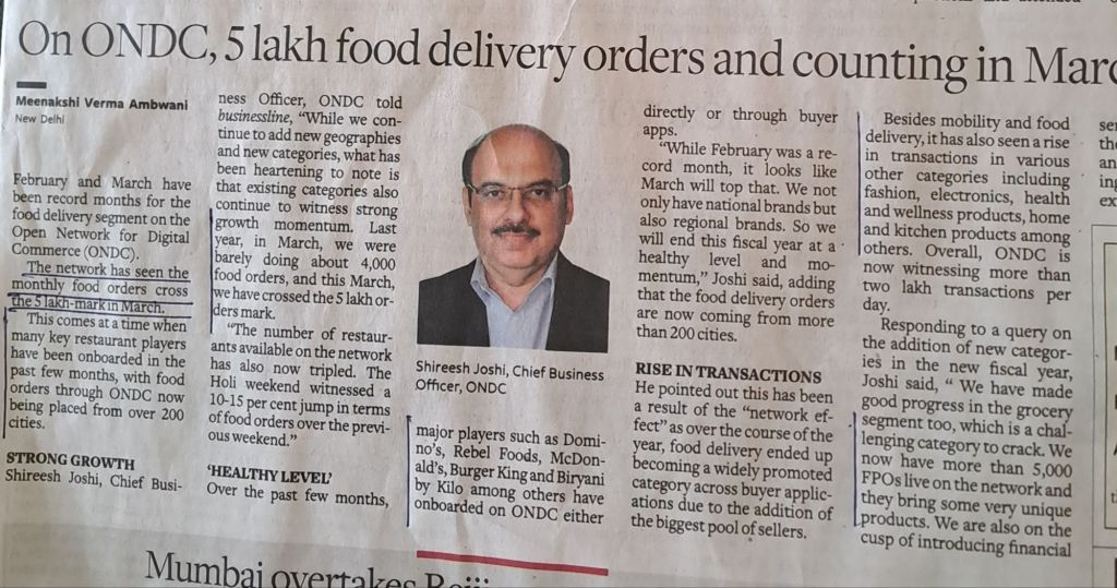 ONDC progressing beyond imagination– Courtesy BusinessLine 27.3.24