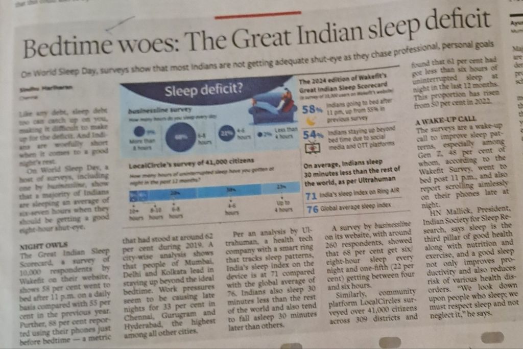 *****Indians affected by sleep deficit– How much ? and What are the causes ? –Courtesy BL