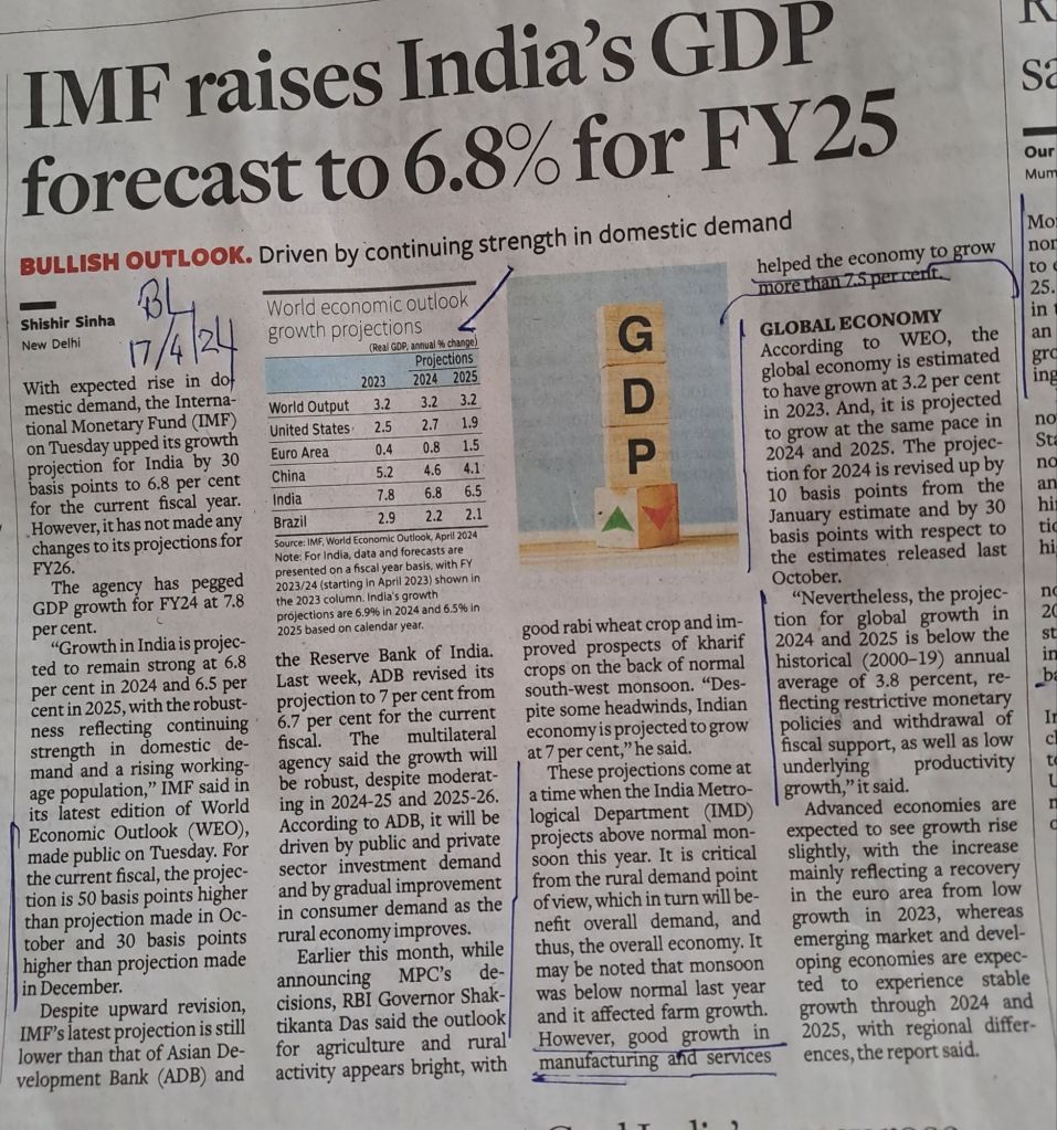 IMF and all raise India GDP growth forecast to 6.8% plus –Courtesy BusinessLine