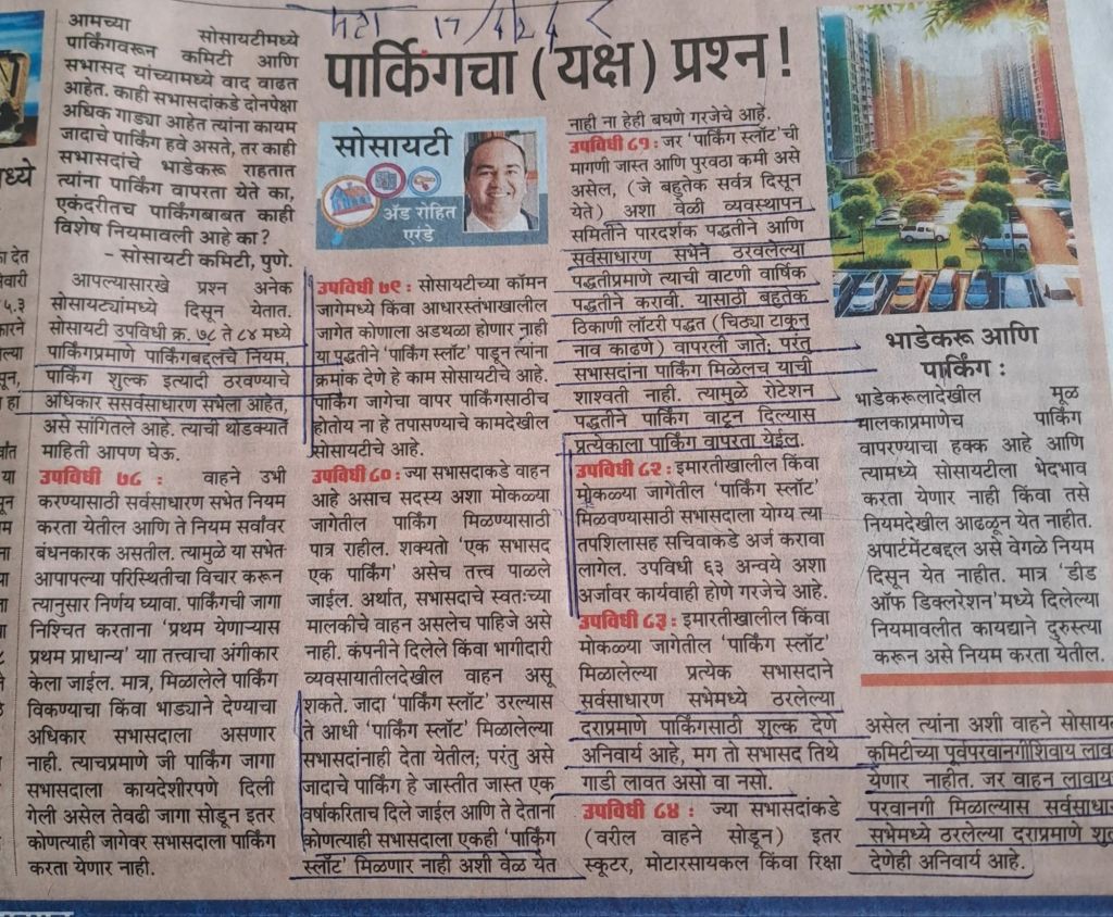 हौसिंग सोसायटी मधील पार्किंग मधील यक्ष प्रश्न — काय करणे गरजेचे आहे ? — सौजन्य महाराष्ट्र टाइम्स