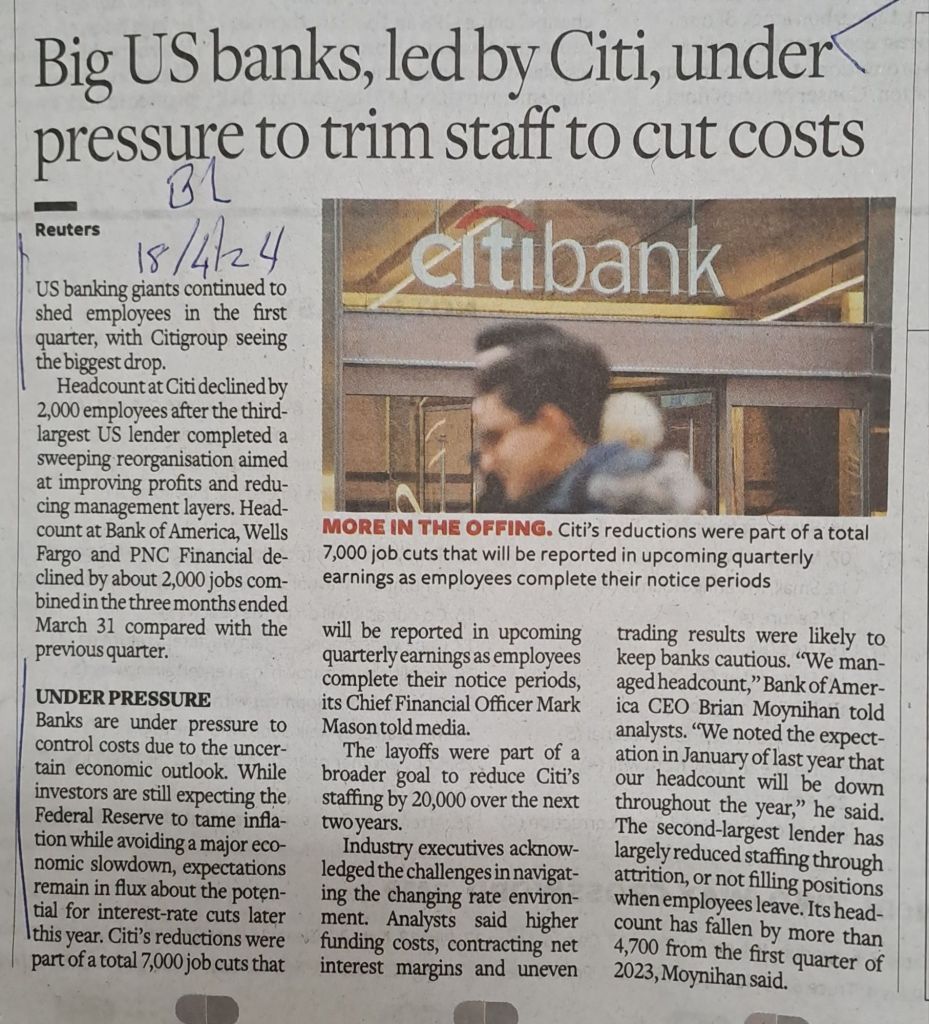 ЁЯСНЁЯСНЁЯСНBanks in US are under pressure to control costs due to the uncertain economic outlook -Courtesy BL
