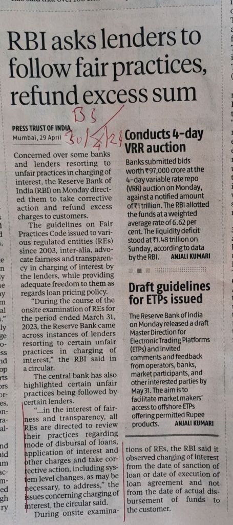 It is distressing to find that some banks are still following the practice of charging interest from the moment sanction is handed over–That is–along with some other reasons — what forces RBI to step in — Courtesy BS