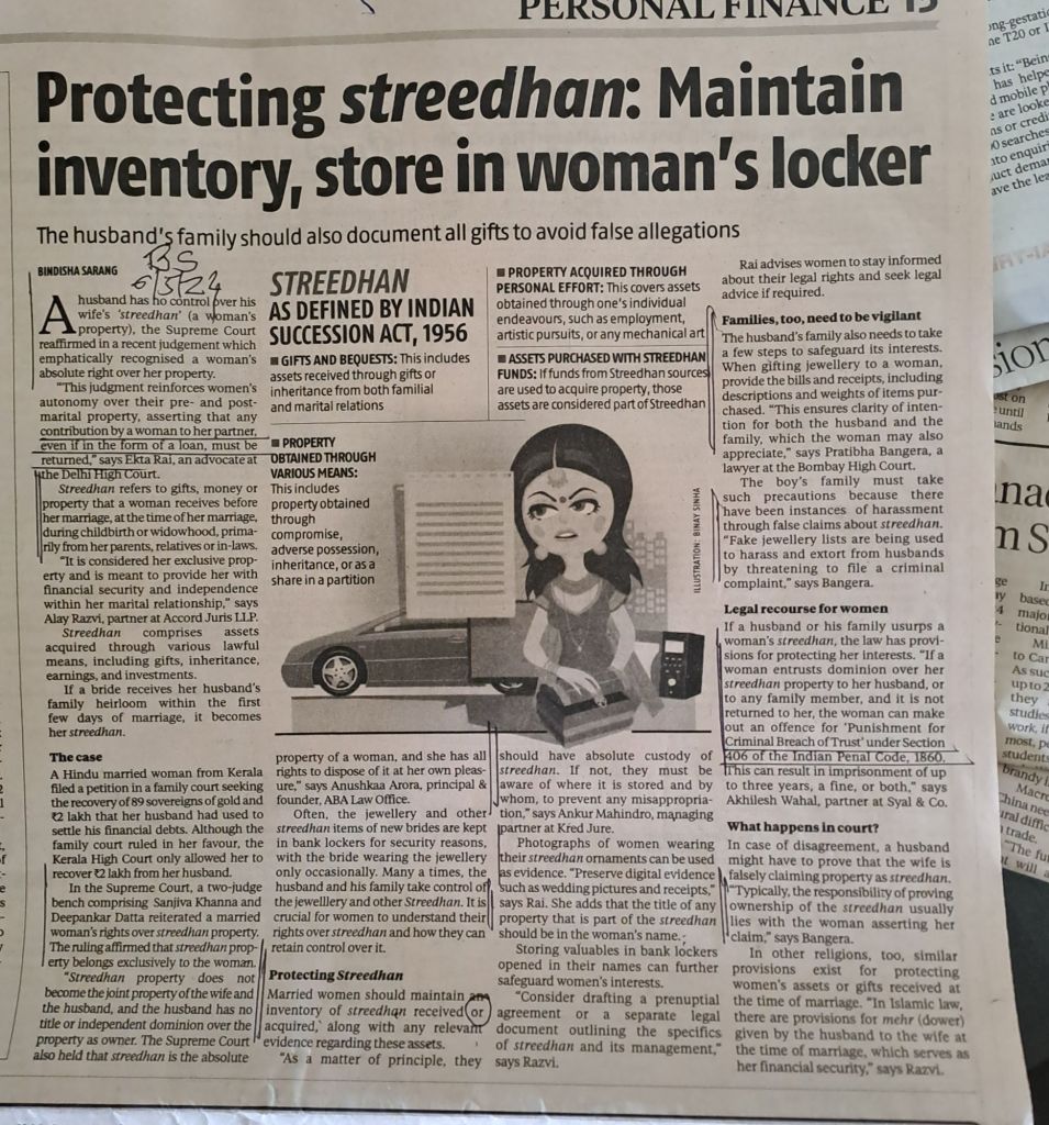 ЁЯСНWhat care needs to be taken to protect ” streedhan ” ? — Whether law provides any remedy if the streedhan is ” misappropriated ” — Courtesy BS