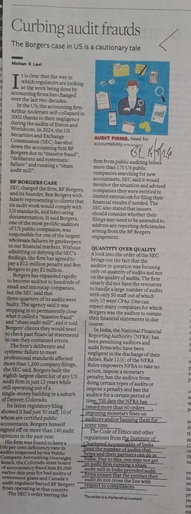 Till date NFRA has issued more than 60 orders imposing monetary fines on auditors and / or banning them for some time – Courtesy BusinessLine