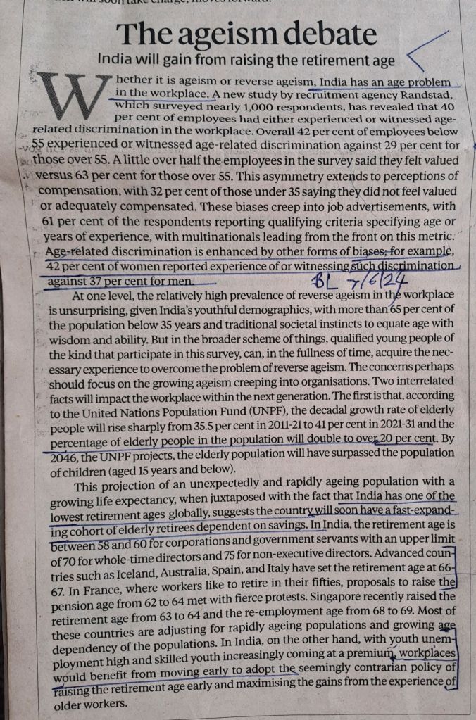 [1] elderly will constitute about 20% of the world population [2] Advanced countries like Iceland – Australia- Spain and Italy have set retirement age at 66-67 — Courtesy EDITORIAL BUSINESS STANDARD