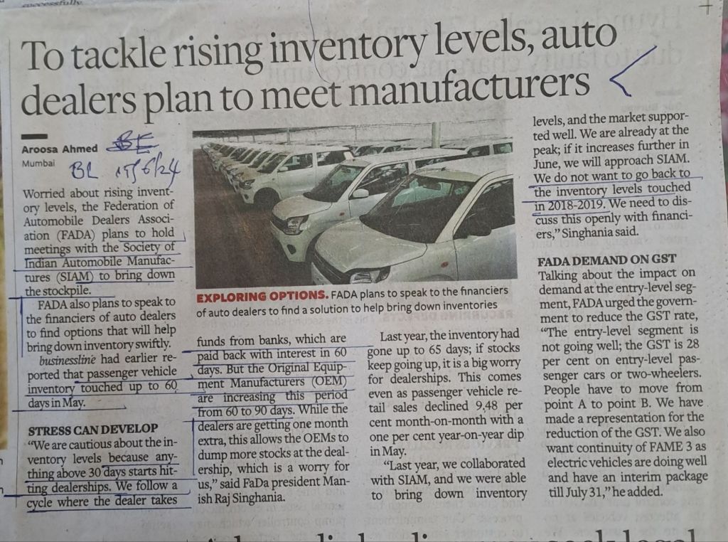 Auto Industry–Preferred [ rather established] Cycle is 60 days but in view of slow moving inventory, cycle is sought to be increased to 90 days