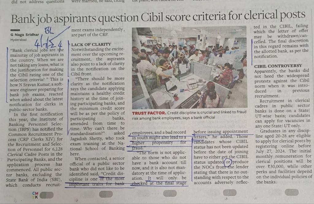 Why CIBIL score is being insisted by PSB employers while recruiting clerks ?