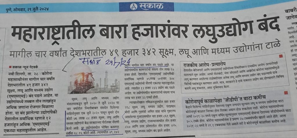 लघु उद्योग विषयक माहिती– सौजन्य सकाळ