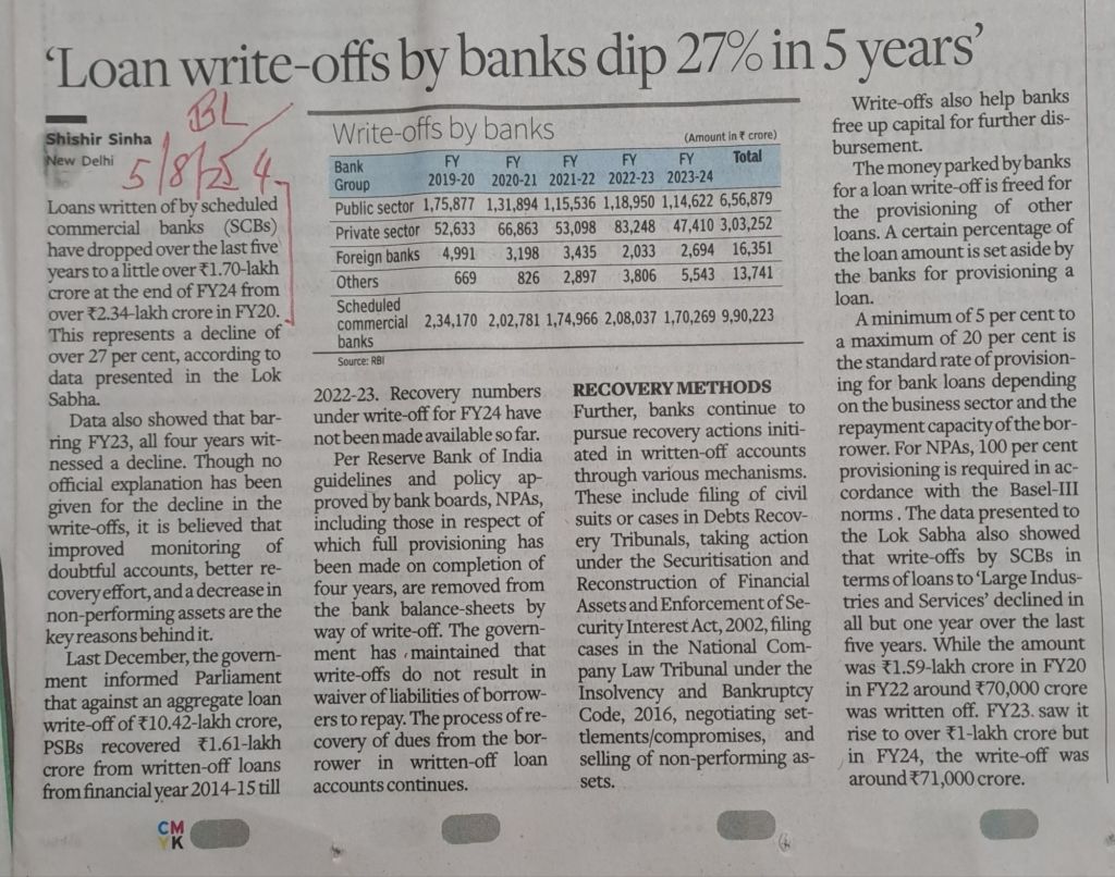 Write offs –dip by 27% in 5 years — Courtesy BusinessLine