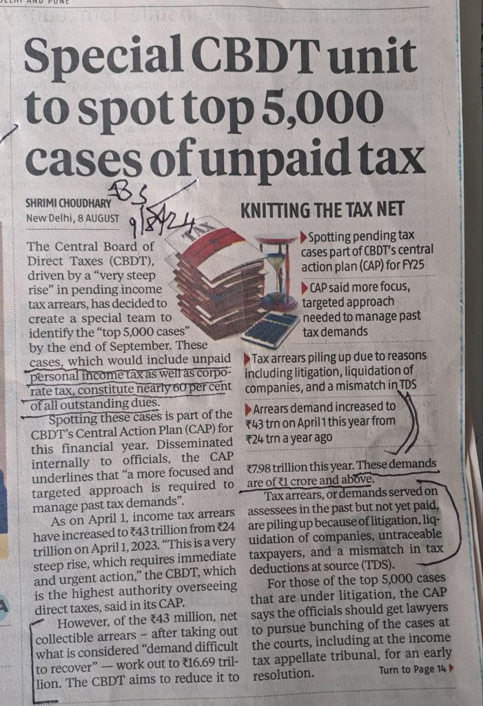 How serious is the income tax arrears issue ? [ Arrears demand increased to 43 trillion on 1.4.24 from 24 trillion an year ago — Courtesy Business Standard
