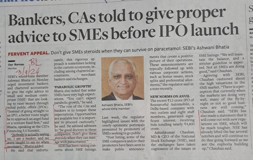 SEBI Whole Time Director Mr Bhatia says ” I am a banker and we were taught to say no when necessary ” Courtesy BusinessLine